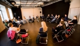Aiemmat tapaamiset on pidetty Riiassa (2023) ja Tartossa (2024), ja tämän vuoden Vilnan kokoontuminen tarjosi inspiroivan yhdistelmän keskusteluja, oppimista ja taiteellista vuorovaikutusta. Erityinen kohokohta oli kolmituntinen mestarikurssi, jota johti 𝗧𝗶𝗮𝗴𝗼 𝗥𝗼𝗱𝗿𝗶𝗴𝘂𝗲𝘀 — ohjaaja, näytelmäkirjailija ja Festival d’Avignonin taiteellinen johtaja.